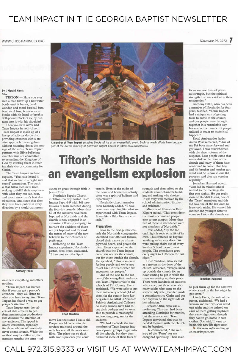 Read about the success Northside Baptist Church in Tifton, GA had with their Team Impact partnership